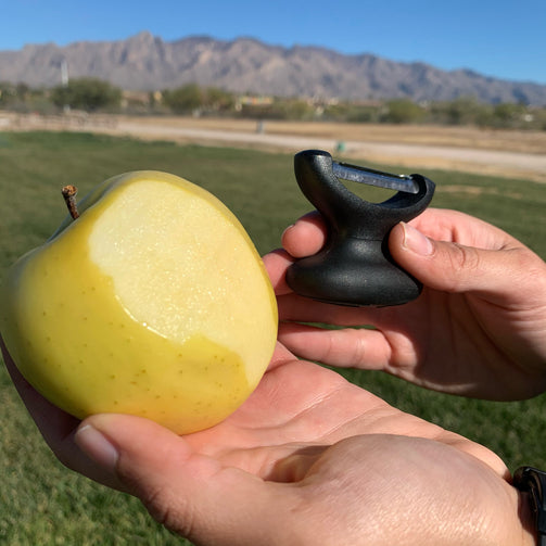 This little peeler fits perfectly in your hand so you can peel your fruits and veggies with ease! Ergonomically designed for both left and right handers! Blade is stainless steel and comes with a cover for safe storage. Measures 3" x 2.125" x 1.375".