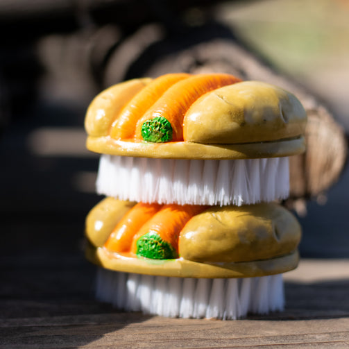 An adorable brush to scrub off the organic soil from your farm fresh veggies! Long-lasting and the perfect kitchen accessory for the vegetable lover.