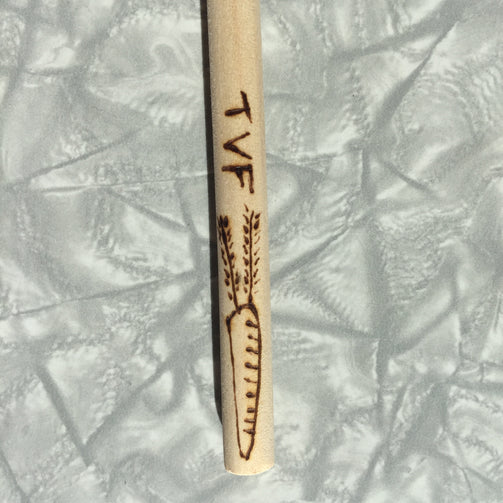 A simple but versatile wooden spoon. It has a shallow concavity that's perfect for stirring soups, stews, or stir frys. Plus, it has a custom wood burnt graphic on the handle that'll help to remind you to eat your veggies!